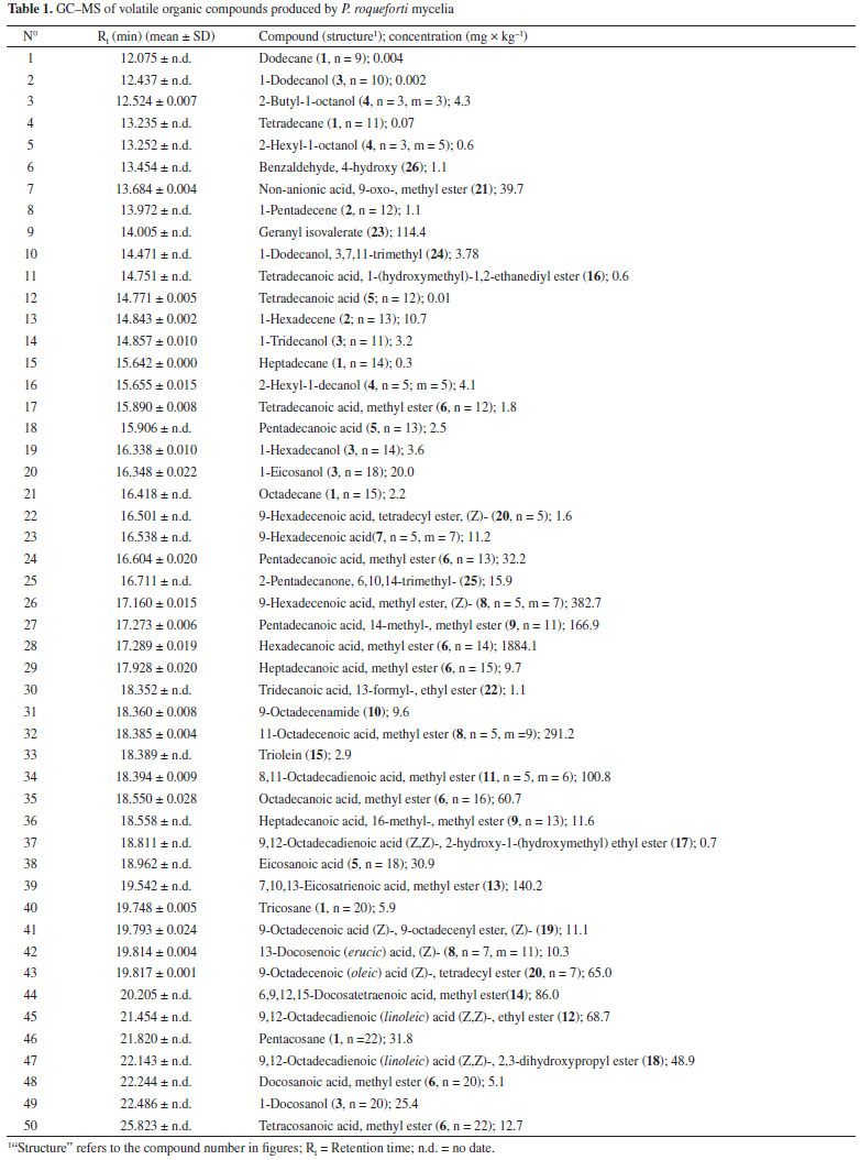 ![]() Figure 1. Volatile lipid compounds identified in Penicillium roqueforti