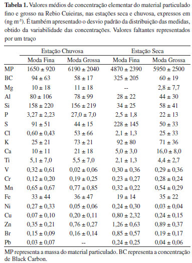 MATERIAL SUPLEMENTAR Gráficos apresentam as séries temporais nas modas fina e grossa para os elementos mostrados neste estudo, disponíveis em http://quimicanova.sbq.org.br, com acesso livre.