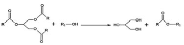 ![]() Figura 1. Reação genérica de transesterificação de óleos vegetais ou gorduras