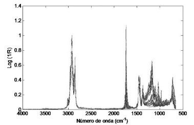 ![]() Figura 3. Conjunto de espectros de infravermelho de todas as amostras