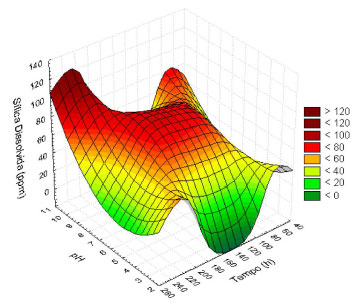![]() Figura 4. Modelo de superfície de resposta para a dissolução da sílica