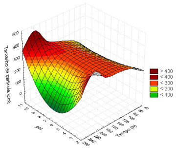 ![]() Figura 6. Modelo de superfície de resposta para o tamanho de partícula da CCA