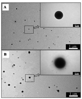 ![]() Figure 1. TEM images of zein NPs with encapsulated (A) T4OL and (B) T4OL + propylene glycol