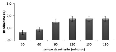 ![]() Figura 3. Histograma do rendimento do óleo essencial da S. guianensis pelo tempo de extração, em processo de hidrodestilação