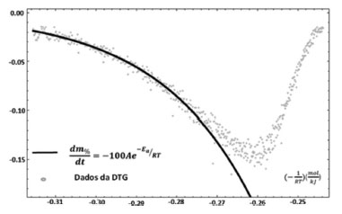 A partir desse fitting, obteve-se a taxa percentual de perda de massa da amostra necessária para o cálculo da curva de Arrhenius, mostrada na Figura 6.