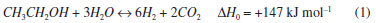 STEAM REFORMING OF ETHANOL (SRE) Hydrogen, a clean alternative to current fuels, can be produced from various sources, such as coal, natural gas, light gas oil, propane, methane, gasoline, light diesel, biomass, and water.5 Of these, H2 production from ethanol is convenient for various reasons: (1) ethanol is renewable and its availability has considerably increased in recent years;8 (2) it is easy to transport; (3) it decomposes relatively easily in the presence of water and generates a mixture rich in hydrogen; (4) it is free of sulfur and compounds that poison the catalyst; and (5) the reaction for H2 production with ethanol is thermodynamically feasible.9,10 In addition, the benefits of H2 as a fuel include: (1) reduction in the dependency on fossil fuels, (2) environmentally benign, (3) reduces air pollution, (4) renewable, (5) obtained from various sources, (6) carbon-free fuel source, (7) high energy content per unit mass, and (8) high octane rating.9 Ethanol steam reforming (shown in pathway 1 of Figure 1) occurs through the following reaction:10