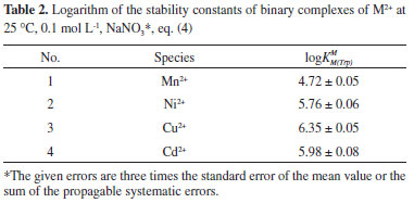 RESULTS AND DISCUSSION The potentiometric pH titrations (25 ºC, 0.1 mol L-1, NaNO3) were performed to obtain the acidity and stability constants, which are summarized in Tables 1 and 2.