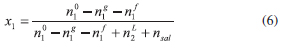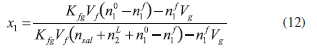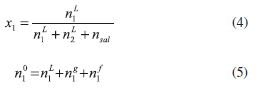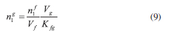 sendo nLé o número de mols na fase liquida; n0número de mols iniciais; ng número de mols na fase gasosa; nf número de mols na fase da fibra. Substituindo n1L da Equação 5 na Equação 4: