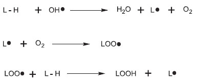 ![]() Figura 1. Reação em cadeia iniciado pelo radical hidroxila, adaptado de Tappel16