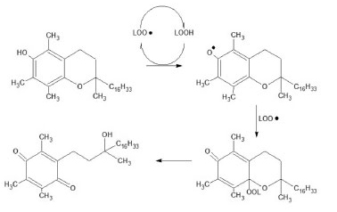 ![]() Figura 2. Ação antioxidante do α-tocoferol no organismo, modificado de Siese colaboradores17