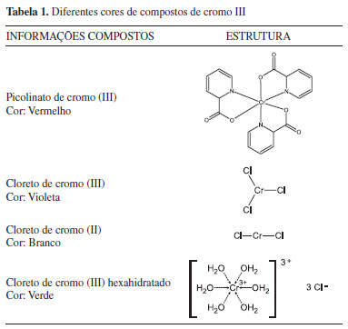Algumas características químicas dos compostos presentes no suplemento É importante ressaltar para os alunos algumas características químicas dos compostos presentes no suplemento para que os mesmos possam seguir um caminho na avaliação dos possíveis eventos químicos que ocorreram durante a degradação do comprimido. Partindo da composição do comprimido (Material Suplementar) podem ser abordadas características físicas e de reatividade, com base no conteúdo de livros de química inorgânica, como por exemplo o texto de Atkins33 e o de Lee.34 Os metais alcalinos (1A) e alcalinos terrosos (2A), presentes na forma de sais no comprimido, possuem a característica de existirem em apenas um estado de oxidação, M+1 e M+2, respectivamente. Também estão presentes sais de metais de transição, cuja principal característica é a possibilidade de existirem em diversos estados de oxidação, os quais diferem em uma unidade. Por não possuírem número de oxidação variável, não esperamos que os sais da família 1A e 2A sofram reações de redox facilmente. Já os de metais de transição tendem a sofrer reações de redox facilmente, e tais íons metálicos possuem grande tendência a formar complexos com ligantes (grupos capazes de doar um par de elétrons). Essa característica é o que torna alguns íons de metais de transição essenciais ao organismo, uma vez que esses íons coordenam-se com proteínas, ácidos nucleicos, lipídios e outras moléculas, influenciando o seu funcionamento.33 O comprido degradado apresentou alterações visíveis de coloração despertando o seguinte questionamento por parte dos alunos: "Porque as substâncias apresentam cores diferentes?". A partir desta pergunta, abordou-se assuntos relacionados com as cores das substâncias. As cores dos compostos estão relacionadas com transições eletrônicas. Por exemplo, os compostos iônicos, quando formados pela combinação de cátions das famílias 1A e 2A, com ânions de não-metais, geralmente são brancos. Isso ocorre pois os cátions formados possuem configuração de gás nobre, nos quais a energia necessária para ocorrer transições eletrônicas é muito grande. Assim sendo, geralmente formam compostos iônicos brancos. Somente serão coloridos os compostos em que o ânion é responsável pela cor. Em contraste com as substâncias derivadas dos elementos das famílias 1A e 2A, muitos compostos iônicos e covalentes dos metais de transição são coloridos. Essa cor pode resultar do fato de as camadas d ou f estarem incompletas, o que permitem transições eletrônicas de energia compatível com frequências da luz visível. A magnitude da diferença de energia dos orbitais envolvidos nas transições eletrônicas é o fator determinante da cor destes compostos, e é fortemente influenciada pelo ambiente ao redor de íon central. Assim, na presença de solventes, ligantes ou outros íons, as energias dos orbitais d serão alteradas, o que explica porque um mesmo metal apresenta cores diferentes, dependendo dos componentes da substância.33,34 Alguns exemplos desses efeitos nos compostos de cromo III estão listados na Tabela 1.