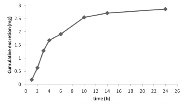 ![]() Figure 7. Cumulative amount of TM excreted in urine after an oral dose of 50 mg TM
