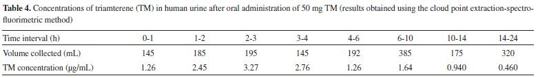 | Determination of triamterene in human plasma and urine after its cloud point extraction |