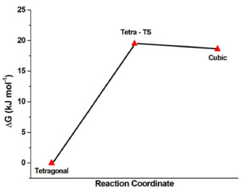 ![]() Figure 5. Potential energy surface (PES) for the tetragonal-cubic transition using tetragonal phase as a reference state