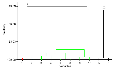 ![]() Figure 1. Hierarchical Component Analysis (HCA) of Tapirira guianensis plants collected from five populations of the North of Brazil