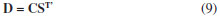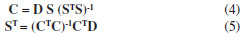 na qual C = CT e ST' = T-1ST Esta é a formulação matemática da ambiguidade rotacional, a qual significa que podemos obter a mesma solução otimizada na descrição do conjunto de dados D usando os conjuntos de perfis (C e S) com formas diferentes dos verdadeiros (C e S). Mesmo na ausência de ambiguidade rotacional, a Equação 1 pode ser reescrita como na forma da equação 10: