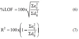 na qual eij é igual a (dij é um elemento da matriz D e é o mesmo elemento na matriz reconstituída D*). Desta forma, baixos valores de LOF são requeridos, bem como valores de R2 o mais próximo possível de 1.31