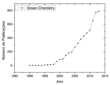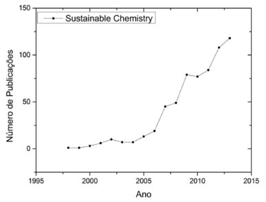 ![]() Figura 1. Evolução das publicações utilizando como palavra-chave "green chemistry"