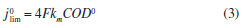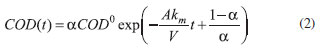 where COD0 and COD(t) are the COD (mol m−3) values at the times of electrolysis zero and t (s), α is the ratio between the applied current density (j) and the initial limiting current density ( j0lim):
