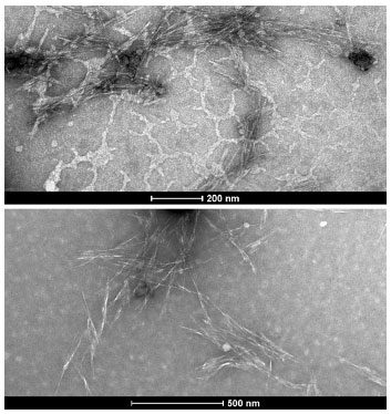![]() Figura 1. Micrografias obtidas por microscopia eletrônica de transmissao da soluçao de nanocelulose da fibra de coco verde (Escala 200 e 500 nm)