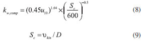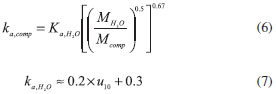 nas quais M é a massa molar (g mol-1) e u10 é a velocidade do vento (m s-1) a uma altura de 10 m acima do nível do mar. O coeficiente de transferência de massa kw,comp (cm h-1) na água do mar é calculado da seguinte forma: