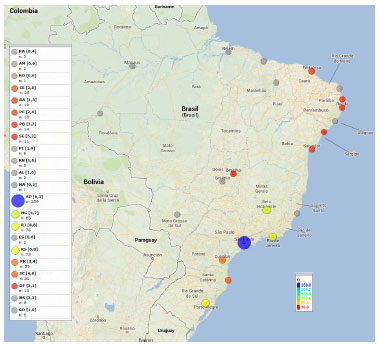 ![]() Figura 1. Distribuição geográfica dos bolsistas PQ da área de Química