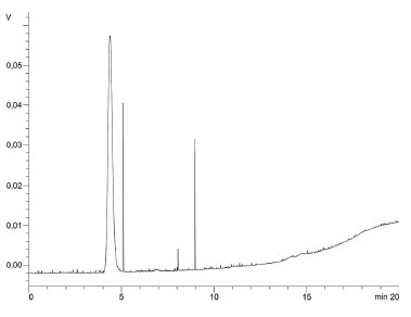 ![]() Figura 2. Cromatograma com a identificação dos ésteres etílicos produzidos a partir do experimento 4, utilizando o extrato líquido liofilizado obtido com o fungo Aspergillus niger no cultivo sem ajuste de pH
