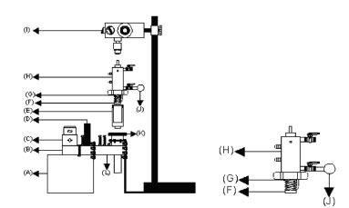 ![]() Figure 1. Monomode reactor. (A) High voltage system; (B) Inox 304 Launcher WR 340; (C) Magnetron valve; (D) MicroFan; (E) Teflon reactor; (F) Teflon stirring paddle; (G) Cooling coil (304 stainless steel); (H) Condenser; (I) Mechanical stirrer; (J) Insertion point of thermocouple type PT 100; (K) Connection flange; (L) Waveguide WR340 (304 stainless steel)