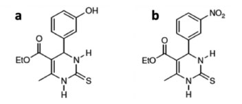 ![]() Figure 1. Molecular structure of (a) monastrol and (b) LaSOM 65
