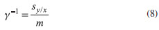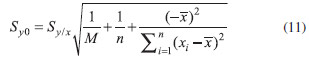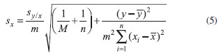 where ŷi is the value of the signal calculated from the regression equation, corresponding to a concentration xi, and sy/x is a measure of the goodness of the fit of the experimental data to a line. In the prediction of a problem sample using the external calibration method, the general expression to calculate the standard deviation of the prediction, in concentration units, is given by