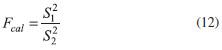 where S12 and S22 are the variances of the two sets of results. Note that the larger variance of the two methods must be in the numerator because Fcal > 1. The value is compared with the tabulated value Ftab obtained from the statistical F-distribution for the significance level chosen (α) and the degrees of freedom (n1 - 1) and (n2 - 1), where n1 and n2 are the number of measurements performed using methods 1 and 2, respectively. If Fcal < Ftab, there are no significant differences between the variances of the two sets of results. In this case, the next step consists of performing a t-test. If n1 or n2 are lower than 30, considering a Gaussian density function and that S12 and S22 are not significantly different, the parameter tcal is calculated according to the following: