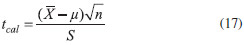 Where µ is the true value. Here, according to the null hypothesis, µ = 0, and the above equation is expressed in the form