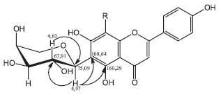 ![]() Figure 2. HMBC 2-3JC-H correlations of arabinose anomeric hydrogen and H-2"