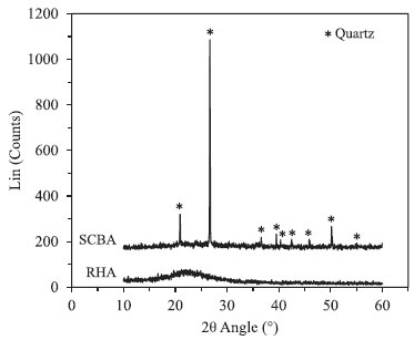 ![]() Figure 2. X-ray diffraction patterns of RHA and SCBA (Cu Kα)