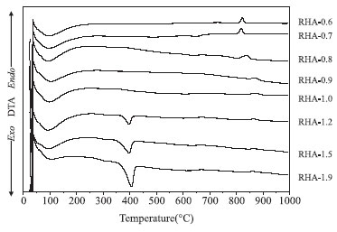 ![]() Figure 4. DTA curves of the RHA pastes with different C/S ratios