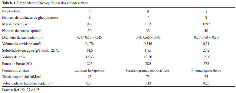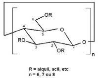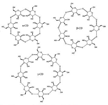 ![]() Figura 1. Estruturas químicas da α, β e γ ciclodextrinas