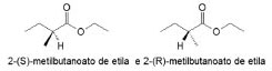 ![]() Figura 4. Estruturas químicas dos enantiômeros de 2-metilbutanoato de etila
