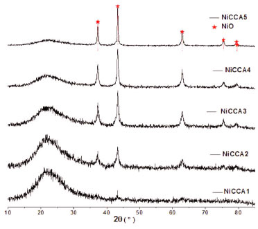 ![]() Figura 2. Difratogramas de raios X dos catalisadores de NiCCA