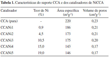 MATERIAL SUPLEMENTAR As Figuras 1S - 3S relativas à distribuição de volume de poros, curvas DSC e variação da razão H2 /CO em função do teor de níquel, respectivamente, estão disponíveis em http://quimicanova.sbq.org.br, na forma de arquivo PDF, com acesso livre.