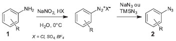 ![]() Figura 1. Esquema da síntese de azidas aromáticas a partir de anilinas