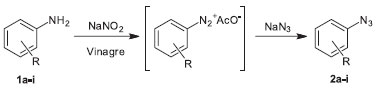 ![]() Figura 2. Esquema de síntese de azidas aromáticas a partir de anilinas usando vinagre
