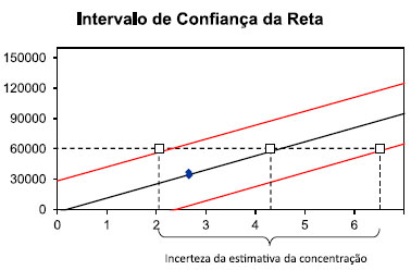 RESPOSTA À CARTA ENVIADA AOS EDITORES Rio de Janeiro, 1 de outubro de 2014. Prezados Editores da Química Nova, Primeiramente, gostaríamos de parabenizar o autor da carta aos editores pela minuciosa avaliação dos conceitos empregados e pelo enorme esforço para disseminar o assunto. É necessário que haja uma maior conscientização a cerca do tema e as discussões devem sempre ser bem recebidas. A Equação 4 foi chamada de "incerteza associada à curva analítica" pois é associada somente à variabilidades decorrentes da estimativa da equação da reta pelo método dos mínimos quadrados ordinários - MMQO. A equação é decorrente do intervalo de confiança da reta estimada, onde para uma determinada área, proveniente da análise cromatográfica da amostra, é definido um intervalo de possíveis concentrações, como observado na figura a seguir.
