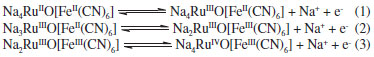 Com o objetivo de diminuir o potencial de detecção da procaína apresentado na literatura para eletrodos de carbono e diamante2,19 utilizou-se um eletrodo de carbono vítreo modificado com hexacianoferrato de rutênio (RuOHCF) para avaliar o comportamento eletroquímico dessa substância sobre essa superfície modificada, Figura 2.