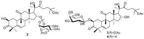 ![]() Figura 2. Derivados glicosilados de di-hidrocucurbitacina B 2, 3 e 4