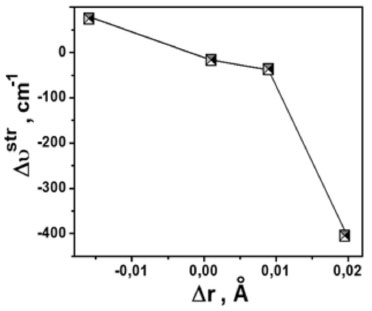 ![]() Figura 2. Relaçao entre os valores dos efeitos red-shift e blue-shift e variaçoes nas distâncias de ligaçao