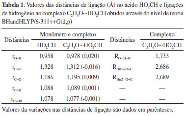 ![]() Figura 1. Geometria otimizada do complexo C2H4O···HO2CH no nível de teoria BHandHLYP/6-311++G(d,p)