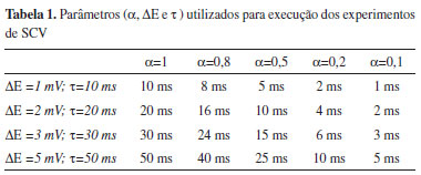 ![]() Figura 2. Representação da composição do sinal da SCV. As definições de ΔE, α e τ estão descritas no texto