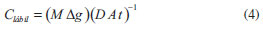 O ensaio foi conduzido com 6 L de solução 50 µg L-1 das espécies, Zn2+, Cu2+, Cr3+, Mn2+, Cd2+, Pb2+, Ni2+ em pH 6,0±0,2 e força iônica 0,01 mol L-1 de NaNO3 a 22 ºC, sob agitação (~1300 rpm) com barras magnéticas de 3 cm. Os dispositivos foram retirados após intervalos de 2,5, 12, 24, 48 e 72 h. Os discos foram eluídos e as massas das espécies calculadas a partir da equação 1, o que permitiu a construção dos gráficos da massa eluída em função do tempo de exposição. O coeficiente de difusão (D) das espécies metálicas foi determinado empregando-se a equação 5 (rearranjo da equação 4), considerando-se que a concentração da solução teste (C), a espessura da fase difusiva (Δg) e a área de exposição (A) são constantes. ![]() na qual: D é o coeficiente de difusão (cm2 s-1); a é o coeficiente angular da reta definida pela relação massa da espécie difundida por unidade de tempo (µg s-1); Δg é a espessura do gel difusivo (cm); C é a concentração da solução (µg cm-3) e A é a área exposta a solução externa (cm2).10,11,13 O coeficiente de difusão pode ser corrigido para diferentes temperaturas; basta recorrer à equação de Stokes-Einstein que fornece uma relação aproximada entre coeficiente de difusão (D), viscosidade (µ) e temperatura (T), expresso na equação 6: ![]() sendo que: D1 é o coeficiente de difusão (cm2 s-1) do íon no gel determinado na temperatura T1; D2 é o coeficiente de difusão (cm2 s-1) do íon no gel na temperatura T2; µ1 é a viscosidade (kg (ms)-1) do solvente na temperatura T1; µ2 é a viscosidade [kg (ms)-1] do solvente na temperatura T2; T1 e T2 são as temperaturas absolutas. No caso da agarose foi considerada a viscosidade da água, visto que os coeficientes de difusão das espécies na água e no gel são semelhantes.10,11,13 Recuperação das espécies com o dispositivo modificado Nesta etapa seis dispositivos com a fase de ligação proposta foram imersos por 48 h em 6 L de solução contendo os íons metálicos nas mesmas condições descritas na etapa anterior, sendo três dispositivos com a fase difusiva AGE e três com a fase difusiva HPA. Após as 48 h os dispositivos foram retirados, as espécies eluídas e posteriormente quantificadas. As massas foram calculadas a partir da equação 1 e as concentrações lábeis das espécies na solução calculadas a partir da equação 4. Aplicação dos dispositivos DGT em amostra de água natural Uma amostra contendo 8 L de água superficial do Rio Itajaí-Açu foi coletada em um ponto situado a 24 km da costa (latitude 26º51'21.70" S; longitude 48º45'45.41" O) na cidade de Ilhota (SC). A coleta da amostra, assim como a digestão das alíquotas para a determinação da concentração total das espécies metálicas e da concentração na fração dissolvida, e a concentração das mesmas associadas ao material particulado foram realizadas de acordo com o descrito por Sodré e colaboradores (2004),6 a partir do emprego de técnicas limpas. No momento da coleta foram medidas a temperatura (27 ºC), o pH (7,2) e a turbidez (101 NTU) da amostra. Os elementos foram quantificados por ICP OES. O estudo de especiação das espécies metálicas Zn, Cu, Cr, Mn, Cd, Pb, Ni, foi conduzido em laboratório com a imersão por 24 h de três dispositivos DGT modificados (fase de ligação proposta e AGE como fase difusiva) e três dispositivos convencionais (CHELEX-100 e HPA) em 5 L da amostra de água natural, com monitoramento do pH (7,3±0,4) e temperatura (27,5±0,6), sob agitação magnética com barras de 3 cm (~1300 rpm). Após 24 h os dispositivos foram retirados e os discos dos dispositivos modificados foram removidos e eluídos para a determinação das espécies. Os discos dos dispositivos convencionais foram removidos e eluídos por 24 h com ácido nítrico 1,0 mol L-1.10,26 As massas foram calculadas a partir da equação 1 e as concentrações das espécies lábeis no dispositivo foram calculadas a partir da equação 4, na qual foram considerados os coeficientes de difusão determinados experimentalmente para a agarose, porém corrigidos para a temperatura do experimento segundo a equação 6. Para o dispositivo convencional foram utilizados os valores de coeficiente de difusão tabelados.26