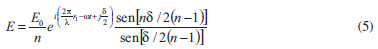 Vamos agora analisar o padrão de difração obtido quando N fendas idênticas separadas por uma distância d são iluminadas uniformemente, como ilustrado na Figura 3. Para calcular o padrão de difração a uma distancia L >> d, utilizaremos o mesmo procedimento anterior.