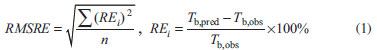 ![]() Figure 2. Observed Tb versus the predicted Tb of the: (a) MLR model; (b) L-ANN model